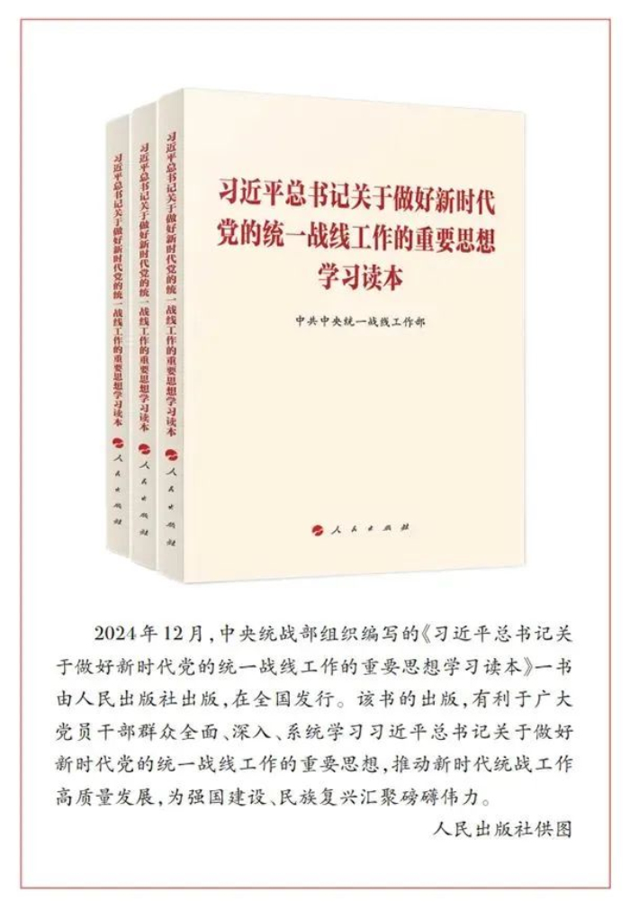 黨的十八大以來(lái),以習(xí)近平同志為核心的黨中央高度重視統(tǒng)戰(zhàn)工作,習(xí)近平總書記就加強(qiáng)和改進(jìn)統(tǒng)戰(zhàn)工作提出了一系列新理念新思想新戰(zhàn)略,形成了習(xí)近平總書記關(guān)于做好新時(shí)代黨的統(tǒng)一戰(zhàn)線工作的重要思想。新征程上,堅(jiān)持把習(xí)近平總書記關(guān)于做好新時(shí)代黨的統(tǒng)一戰(zhàn)線工作的重要思想作為根本遵循,及時(shí)跟進(jìn)學(xué)習(xí)習(xí)近平總書記關(guān)于統(tǒng)戰(zhàn)工作的重要講話和重要指示批示精神,才能確保統(tǒng)戰(zhàn)工作沿著正確方向高質(zhì)量發(fā)展,推動(dòng)統(tǒng)一戰(zhàn)線在強(qiáng)國(guó)建設(shè)、民族復(fù)興偉業(yè)中更好發(fā)揮凝聚人心、匯聚力量的政治作用。